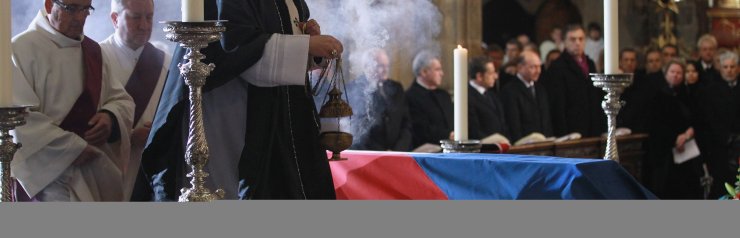 Церемония прощания состоялась в кафедральном соборе Святого Вита. Ровно в полдень пражский архиепископ Доминик Дука объявил минуту молчания, а по всей Праге раздался звон колоколов и вой сирен. После этого началась заупокойная месса, сообщает ИТАР-ТАСС.