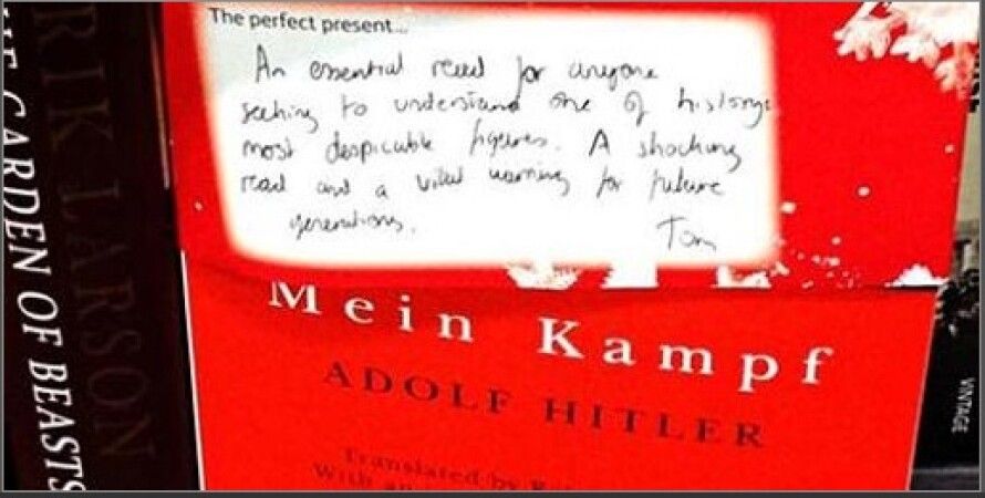 Один из магазинов британской книжной сети Waterstone's снабдил экземпляры книги Адольфа Гитлера "Майн Кампф" стикером "Идеальный подарок на Рождество"