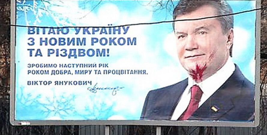 В ночь с 15 на 16 января в городе Дубно Ривненской области неизвестные забросали яйцами билборд с новогодним поздравлением президента Виктора Януковича, установленный в центре города, на пересечении улиц Грушевского и Семидубской, около опорного пункта милиции