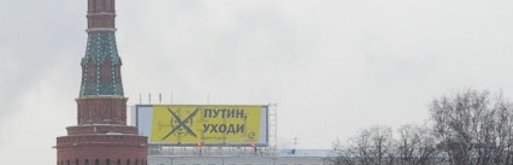 Напротив Кремля повесили огромный баннер "Путин, уходи"