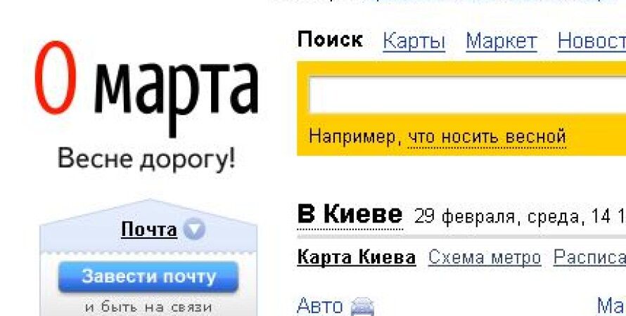 Крупнейший российский поисковик "Яндекс" заменил 29 февраля, которое бывает раз в четыре года, на 0 марта, разместив на главной странице соответствующий логотип