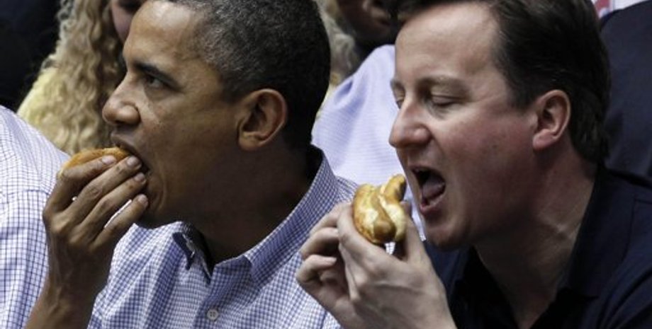 Президент США Барак Обама и премьер-министр Великобритании Дэвид Кэмерон провели вечер по-американски: на баскетбольном матче и с хот-догами