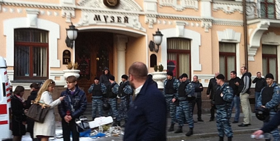 Акция прошла в знак протеста против застройки Андреевского спуска компанией, принадлежащей регионалу, сообщает Украинская правда.