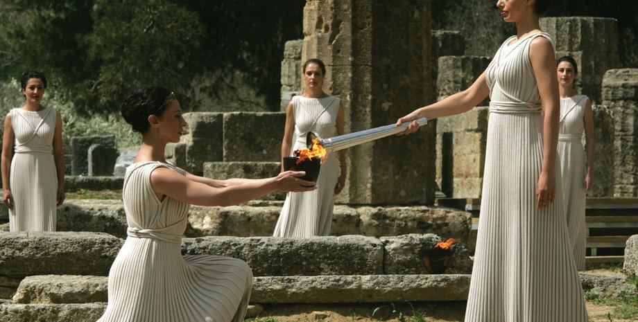"Верховная жрица" церемонии передала факел с зажженным от лучей Солнца олимпийским огнем первому факелоносцу - рожденному в Великобритании 31-летнему греческому пловцу Спиросу Янниотису, сообщает РИА Новости.