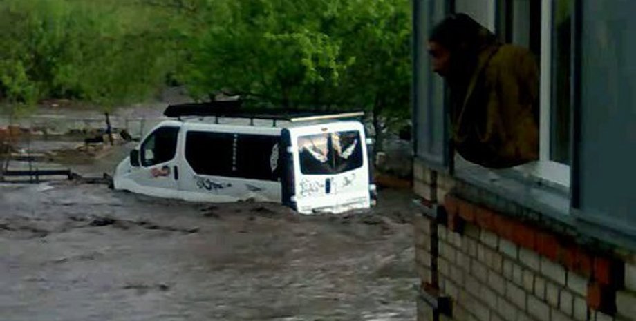 Поток воды унес около 10 автомобилей и перевернул несколько дачных домиков (без фундамента) и туалетов 9 мая в Сумском районе.