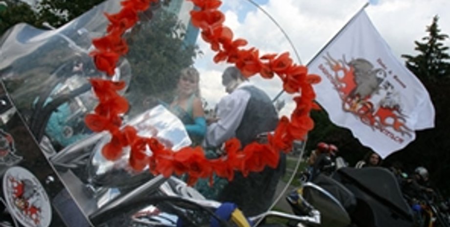 Евгений Окаевич (Жако) и Галина Гранн (Ворона) заключили законный брак во время Первого всеукраинского слета байкеров «Жако & Ворона: байкерская свадьба» в Киеве, 5 июля 2008 г.