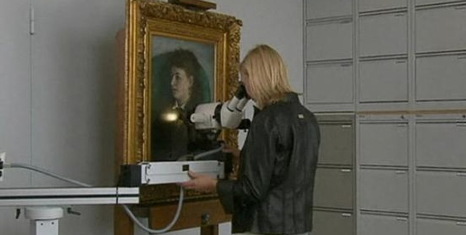 При подробном изучении полотна реставраторы обратили внимание на то, что слой зеленой краски лежит неровно. Сделав рентгеновские снимки, специалисты увидели за портретом пейзаж, сообщают Вести.ру.