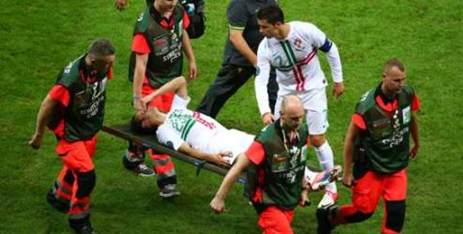 Нападающий сборной Португалии не смог завершить четвертьфинальный поединок против чехов, покинув поле на носилках.