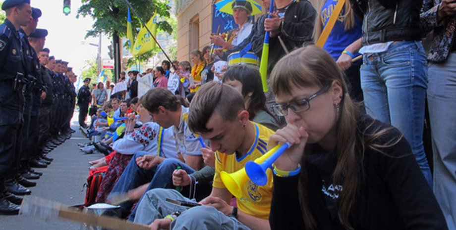 В Киеве третий день подряд продолжаются немногочисленные протесты против языкового закона. Протесты поддерживает и оппозиция.