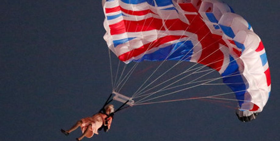 Во время шоу открытия Олимпийских игр в Лондоне актриса-двойник королевы Великобритании Елизаветы II спустилась на стадион на парашюте.
