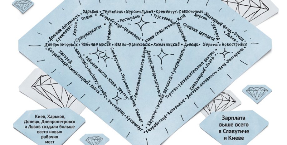 - Днепропетровск, Ялта, Сумы, Трускавец, Славутич — недостаточное число супермаркетов и ресторанов;
