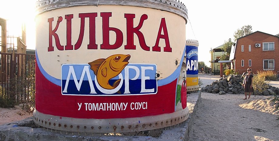 Чтобы подойти к инсталляции Жанны Кадыровой, нужно преодолеть немалое расстояние, увязая в белом песке. Азовское море называют детским, но представленные здесь произведения предназначены взрослым: об этом свидетельствует мрачная работа Макса Роганова из Москвы, выполненная из обращенных к морю мусорных баков на стыке трех стихий — земли, воды и неба. Инсталляция Кадыровой — консервные банки высотой в человеческий рост: "Килька" и "Сардина". Так художница законсервировала бетонный военный объект, остов эпохи времен "холодной войны".