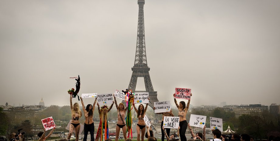 Посвящение в феминистки происходило в Париже на акции перед исламским культурным центром.