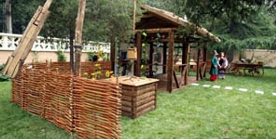 Центр с названием "Украинский дом" оформлен в виде типичного украинского селения. Здесь можно увидеть хатку, плетень, воз, колодец, кринки, подсолнухи, ржаные снопы. Всех гостей встречают народные музыканты с песнями и танцами.