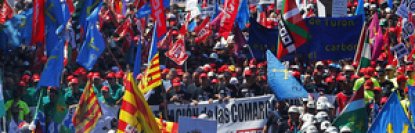 В Греции, которая стала свидетелем двухдневной забастовки на прошлой неделе во время голосования парламентом новых бюджетных сокращений, профсоюзы призвали к остановке работы на три часа и маршу в знак солидарности с испанскими и португальскими рабочими.