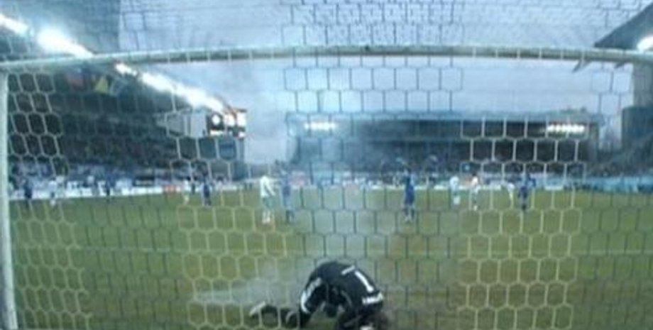 На 37-й минуте матч Динамо - Зенит был прерван после того, как с гостевой трибуны во вратаря хозяев Антона Шунина была брошена петарда.