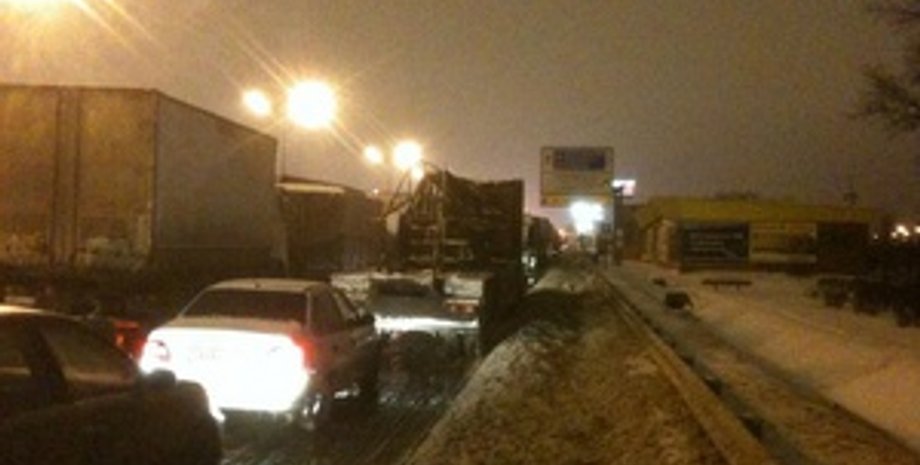 переговорам водителей фур по рации, затор растянулся как минимум на 200