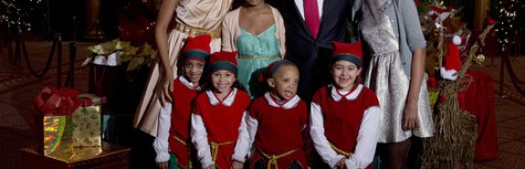 Президент США Барак Обама, его жена Мишель и обе дочери приняли участие в ежегодном благотворительном предрождественском концерте, во время которого президент пел с хором рождественские песни, сообщает в понедельник местное телевидение.