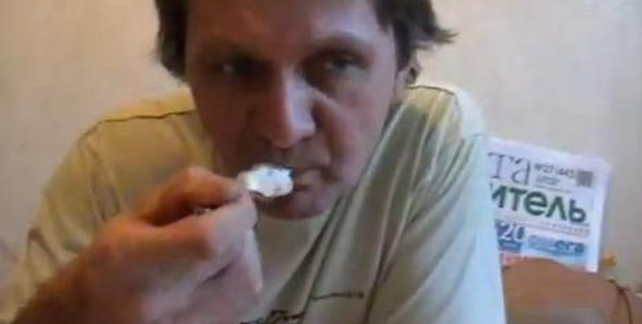 Российский журналист Вячеслав Ледовский съел собственную статью, опубликованную в газете Строитель (Красноярск)