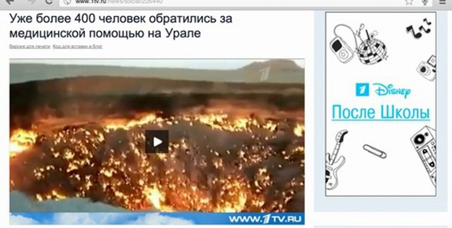 Однако видео, переданное Первым каналом, было загружено еще в 2007 году. Судя по описанию, на нем показан газовый кратер в Туркмении под названием Дарваза. После того, как поступили сообщения о падении метеорита в Челябинской области утром 15 февраля, на YouTube стали появляться копии этого ролика с комментариями, что это якобы кадры с места происшествия.