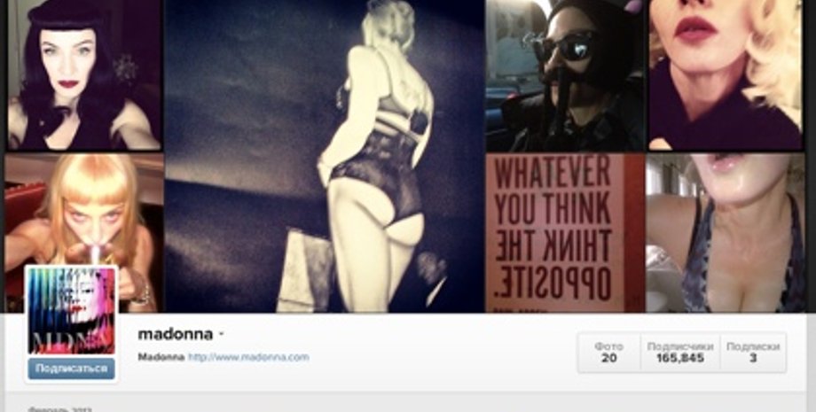 Всего Мадонна опубликовала 18 фотографий, в том числе две после появления предупреждения. На аккаунт певицы подписано 165 тысяч пользователей. Первое фото в профиле Мадонны появилось 4 ноября 2012 года, однако в феврале она стала вести страницу самостоятельно.