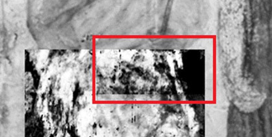 Именно поэтому ученые предположили, что под фреской из его коллекции может быть спрятано другое изображение. Изначально фреску изучили под рентгеном и в инфракрасном излучении, однако ничего не нашли. Впоследствии исследователи пропустили ее через раздевающий терагерцевый сканер, который используется в аэропортах, и под туникой одной из фигур обнаружили фрагменты более древней фрески: нос, глаз и рот.