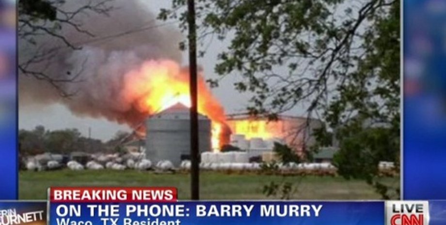 Сильный взрыв произошел на заводе удобрений около города Вако в Техасе.