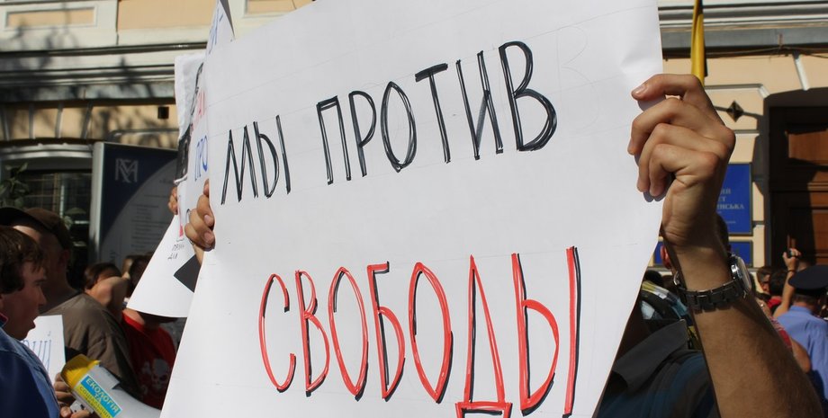 После этого молодые люди попытались зайти в здание академии, чтобы попасть на выступление депутата. Им преградили дорогу представители ВО Свобода. Милиционеры, присутствующие на митинге, разделили группы противников.