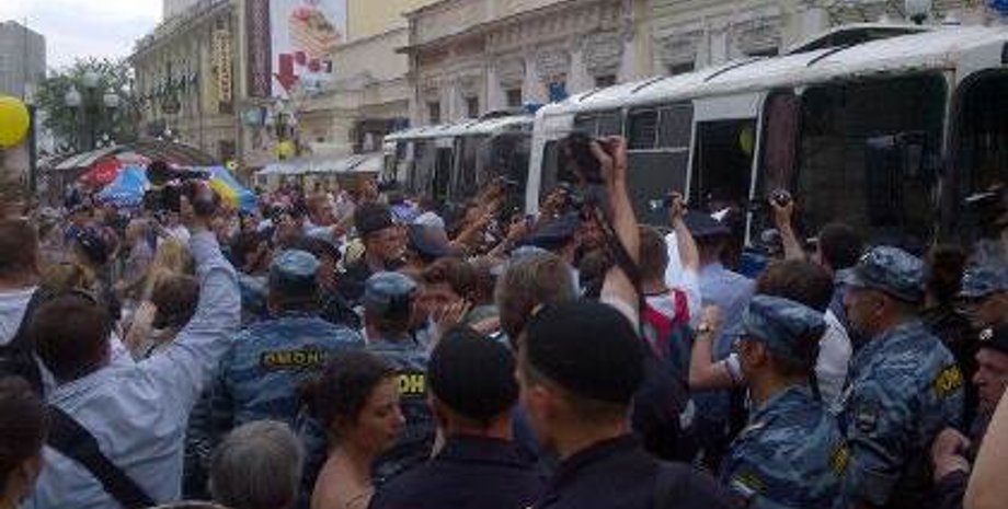 Задержания начались у памятника Булату Окуджаве, сообщает агентство Интерфакс". По данным ИТАР-ТАСС, когда активисты проходили мимо Театра имени Вахтангова, несколько человек залезли на крышу здания и устроили там салют, а также попытались повесить растяжку, но им это не удалось. Полицейские не успели их задержать.