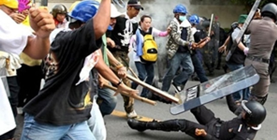 Как передает NEWSru.com, беспорядки в центре таиландской столицы вспыхнули, когда около восьми тысяч демонстрантов прорвали полицейское оцепление у здания парламента, чтобы сорвать первое выступление нового Премьера. Вонгсават был избран 17 сентября 2008 года после ухода в отставку Самака Сунтаравета, уличенного в нарушении Конституции.