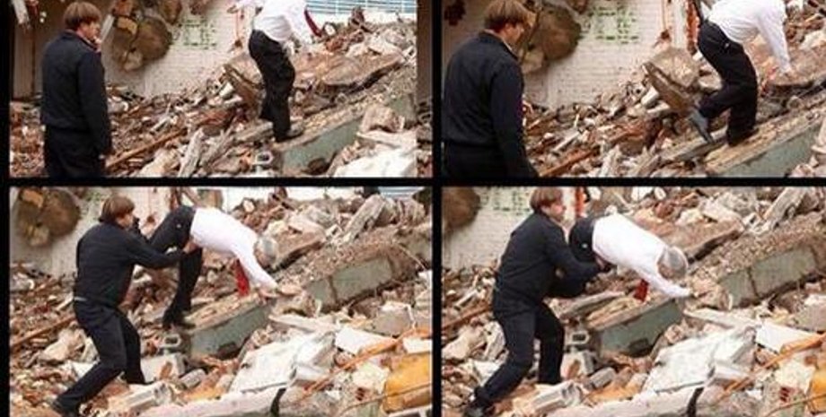 Между тем, в социальных сетях появились многочисленные фотографии падения президента, предотвратить которое безуспешно пытался глава местной районной администрации. На фото видно, что Пиньера в падении достаточно серьезно ударился головой об обломки здания.