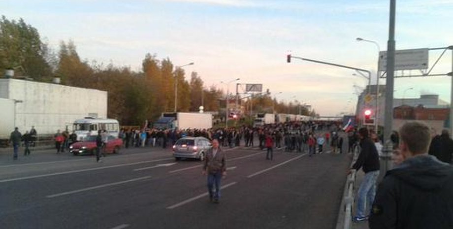 Участники акции протеста в московском районе Западное Бирюлево атаковали плодоовощную базу Покровская. К месту событий выдвигаются представители фанатских группировок.