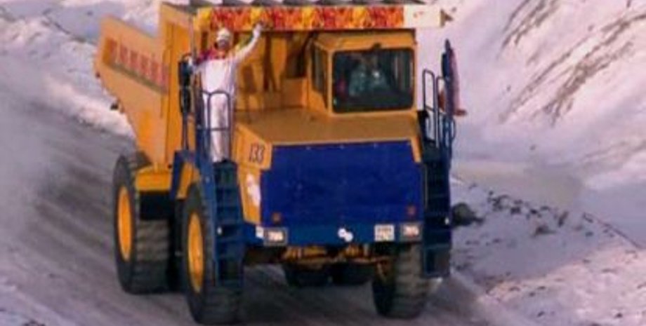 Позже факел отправился в алмазную столицу России - город Мирный. Олимпийский огонь проехал на грузовике БелАЗ по карьеру алмазной трубки Мир, а затем его пронесли по улицам города.