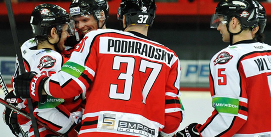 Донбасс: Лейтон; Коларж - Пиганович, Лайне - Федотенко - Виртанен; Уилсон - Подхрадски, Дадонов - Недорост - Якуценя; Бартулис - Разин, Кашпар - Робитайл - Киискинен; Щегольков - Варламов - Торяник; Сильницкий.