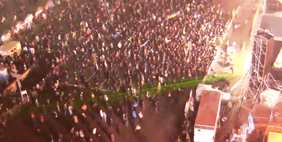 Сейчас на главной площади Киева находятся почти 5 тысяч человек, которые слушают выступления артистов со сцены Майдана.