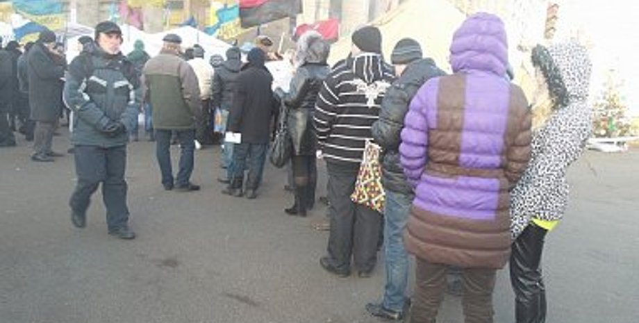В заявлении указываются фамилия, имя, отчество, адрес проживания, контактный телефон и электронная почта заявителей. Заполненные заявления люди несут в палатку, где получают удостоверение. Палатки поставили только сегодня, хотя о создании организации объявили на последнем народном вече, в воскресенье, 22 декабря.
