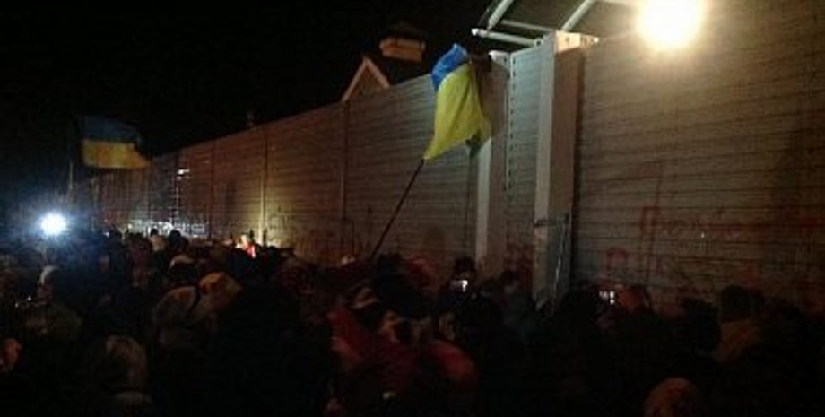 Как сообщает УНИАН, митингующие также раписали краской забор, за которым находится дом Азарова. Среди надписей - "Бимбу геть!", "Будет трибунал".