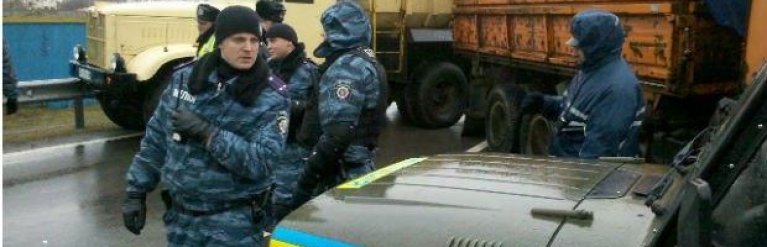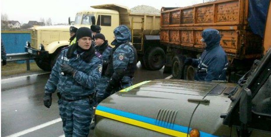 Из микроавтобуса вышли около 15 правоохранителей в полном обмундировании без каких-либо опознавательных знаков, которые позволяли бы определить принадлежность к какому-либо подразделению. Кроме того, милиция крутит аудиозапись, в которой предупреждает, что на месте ведется видеофиксация. "В случае невыполнения судебного запрета милиция может применить законные меры, предусмотренные законодательством. Милиция не хочет, чтобы кто-то пострадал. Есть возможность решить ситуацию мирным путем. Мы не станем препятствовать тем, кто немедленно покинет эту территорию", - говорится в аудиозаписи.