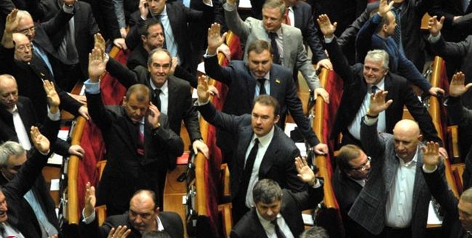 Напомним, сегодня депутаты приняли госбюджет и еще ряд резонансных законов. Почти все законы, кроме бюджета, депутаты голосовали руками. Через несколько секунд после поднятия рук глава счетной комиссии Владимир Олийнык объявлял голоса, это стандартная цифра 235.