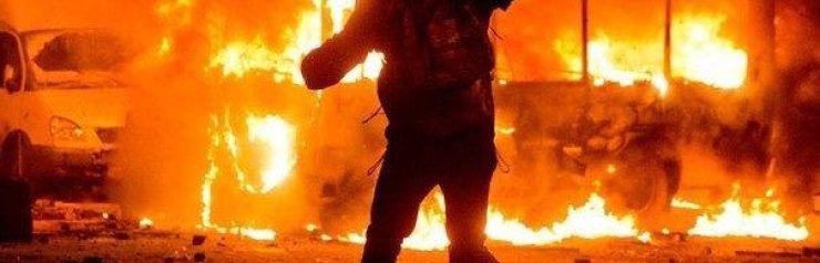Столкновения продолжаются. Горит машина милиции. В митингующих стреляют резиновыми пулями, милицию в ответ обильно "поливают" камнями.Агрессии на Грушевского все больше, хотя на часах уже около 22.00. Митингующие поджигают еще один автобус, а еще два оттягивают. Завязывается драка. Летят кирпичи разобранной брусчатки. Вскоре вся техника первого кордона милици будет сожжена дотла.