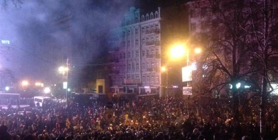 В центре столицы на улице Грушевского более 16 часов продолжаются столкновения демонстрантов с бойцами внутренних войск и спецподразделения "Беркут". Общее число раненых с обеих сторон уже перевалило за сотню, демонстранты сожгли четыре милицейских автобуса и два грузовика