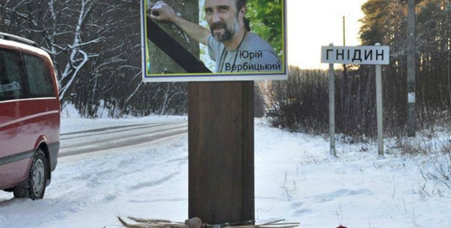 Жители села Гнидын Бориспольского района Киевской области установили памятник на месте, где было найдено тело убитого активиста Евромайдана Юрия Вербицкого