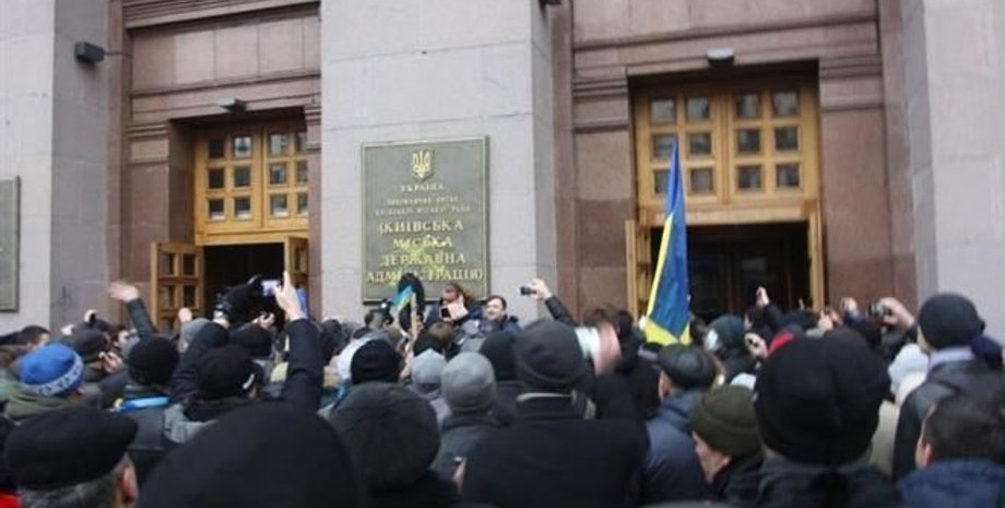 Напомним, 16 февраля оппозиция заявила об освобождении здания КГГА, которое было захвачено активистами Евромайдана 1 декабря 2013 г. Однако в ночь на 17 февраля часть активистов, причисляющих себя к группировкам под названием "Нарния" и "Викинги", попытались снова захватить здание. Это им помещали сделать нардепы от "Свободы".