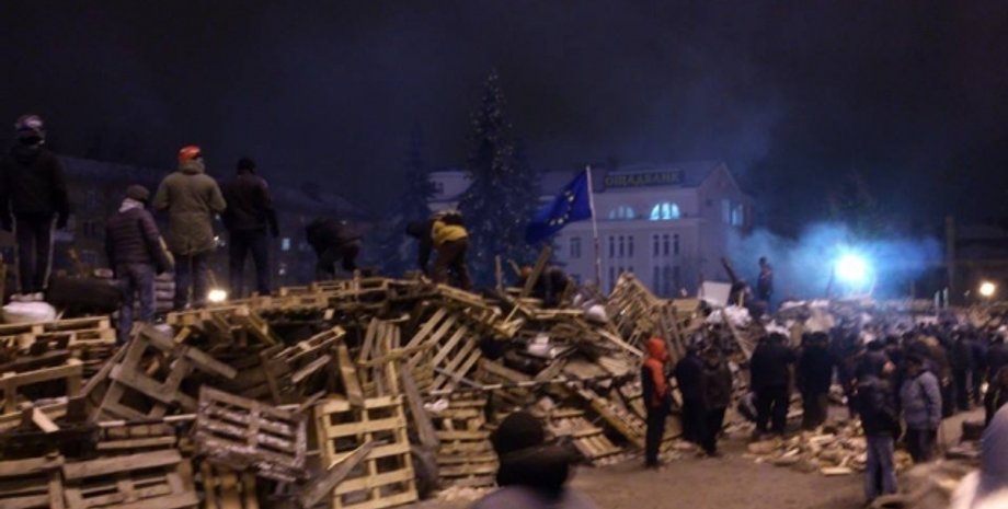 Ивано-Франковскую областную государственную администрацию очистили от баррикад, которые построили здесь после захвата 24 января 2014 года