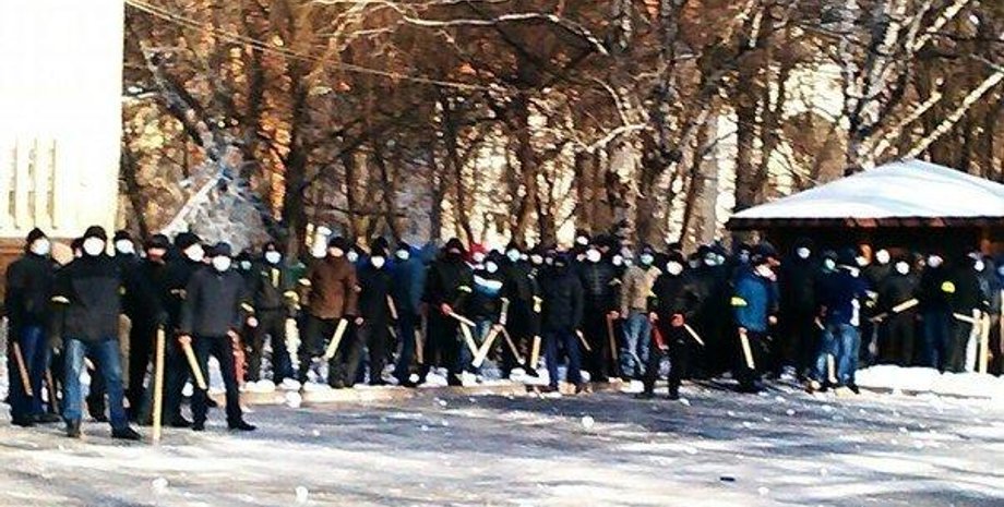 В автобусы садятся мужчины спортивного вида, почти никто не хочет общаться с журналистами. Некоторые смеются и говорят, например, о том, что "едут отдыхать в Карпаты", "к друзьям в гости". У некоторых в руках – каски, в автобусы также погрузили биты, палки.