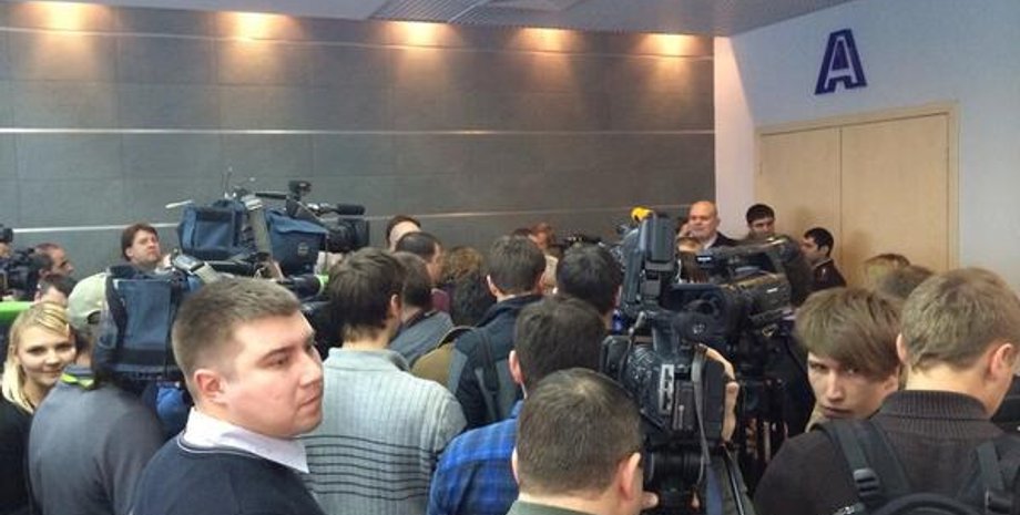 Представителей СМИ начали пропускать в помещение, где в 15:00 (по Киеву) должна начаться пресс-конференция Януковича