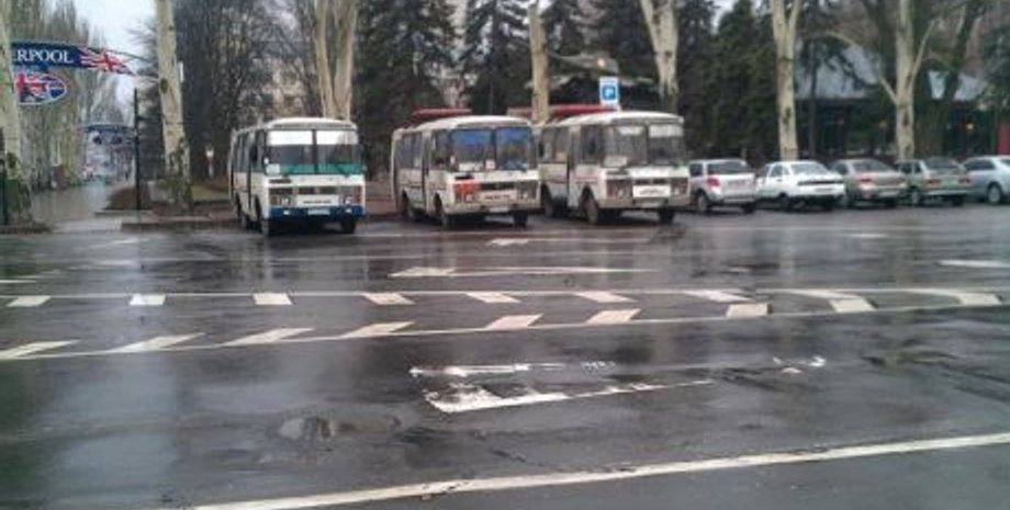 Часть из них собираtтся возле театра оперы и балета, другие выгружаются возле стадиона "Шахтер", - сообщают активисты. По их данным, на одном из автобусов - табличка "Торез", другие - закрыты газетами.