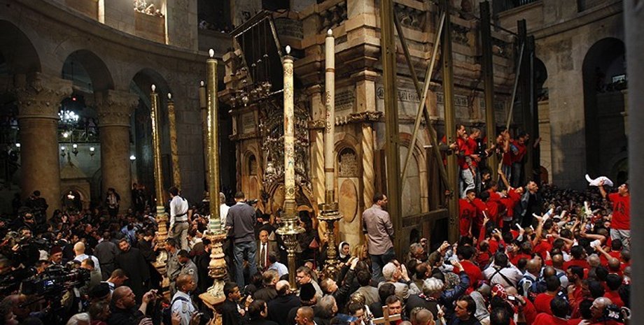 Благодатный огонь, символизирующий нерукотворный свет Воскресения Христова, о котором говорил еще апостол Петр, сошел в храме Гроба Господня в Иерусалиме. Тысячи паломников заполнившили храм и площадь перед ним, передает УНИАН.