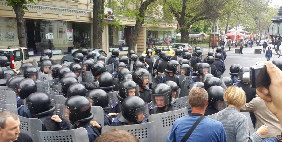 Пророссийские активисты пытаются прорваться в здание городского управления милиции. Как передает одесский сайт dumskaya.net, у здания выстроился кордон правоохранителей. Одного из них вытащили из строя и начали избивать.