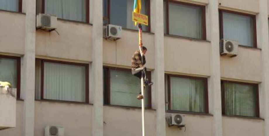 Утром в 8.30 флаг был установлен сторонниками единой Украины